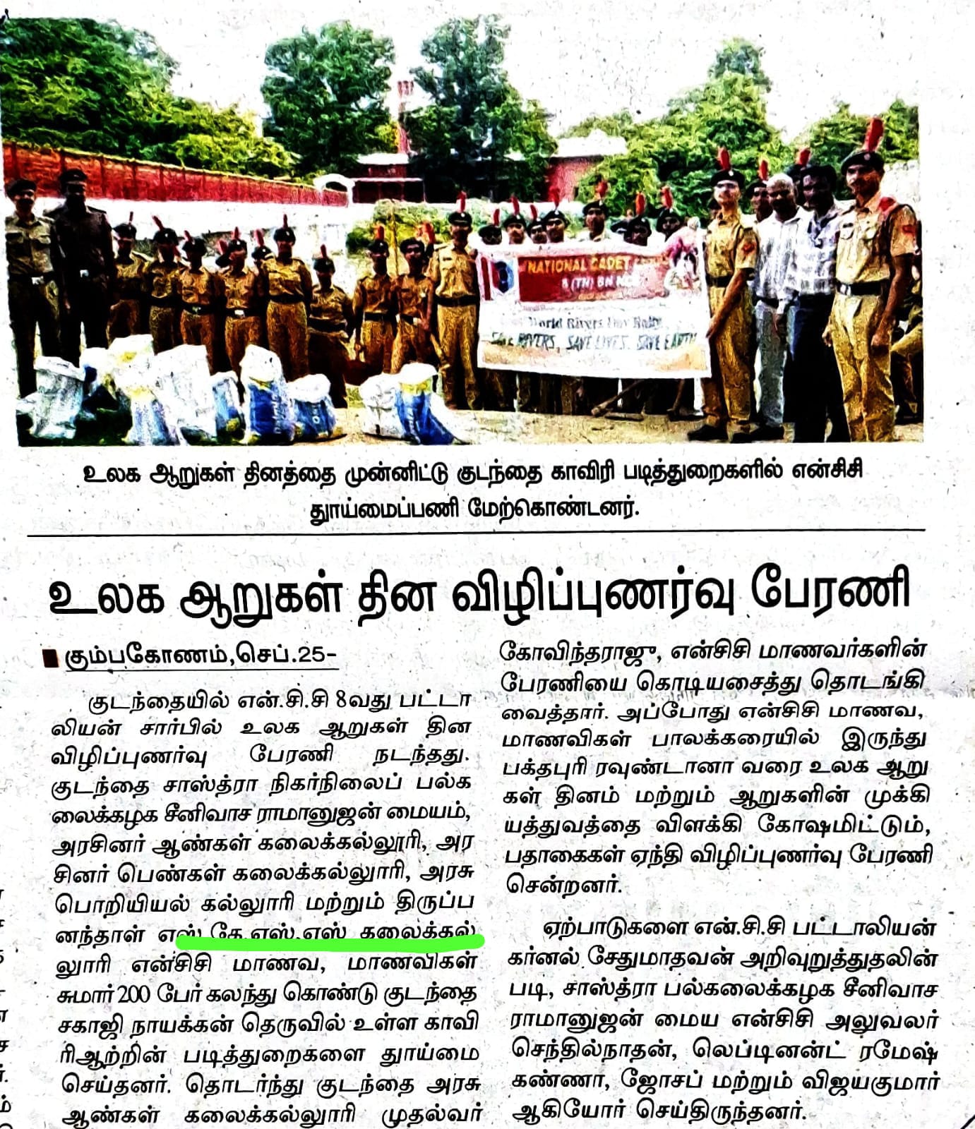 24.09.2025 Wold Rivers Day Campaign at Kumbakonam our college cadets participated